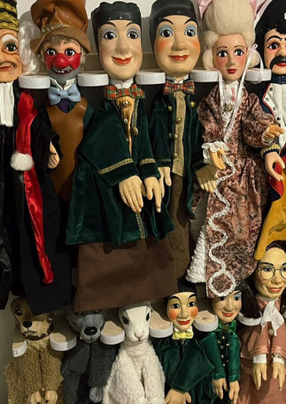 Toutes nos marionnettes sont faites artisanalement, de la sculpture des têtes et des mains en bois de tilleul à la confection des costumes dans des tissus et matières nobles.
